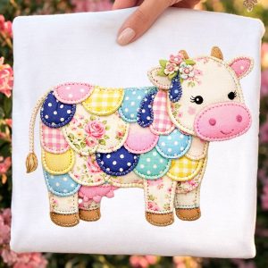 Crafting a Scalloped Patchwork Appliqué Cow - FABRIC PATTERN is a delightful and creative fabric-based project that blends patchwork techniques with appliqué artistry to create a charming cow design. This pattern is perfect for crafters who enjoy working with fabric and want to produce a piece that is both playful and visually appealing.