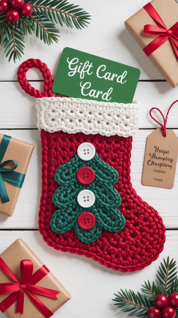 Lastly, remember that handmade gifts carry sentimental value. Even something as simple as a gift card feels more thoughtful when paired with a handmade crochet stocking.