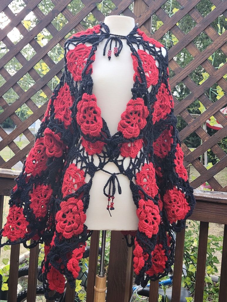 Styling a Crocheted cardigan with roses is part of the joy of wearing it. It pairs beautifully with dresses, jeans, skirts, and layered outfits. The floral elements make it suitable for casual wear or special occasions.