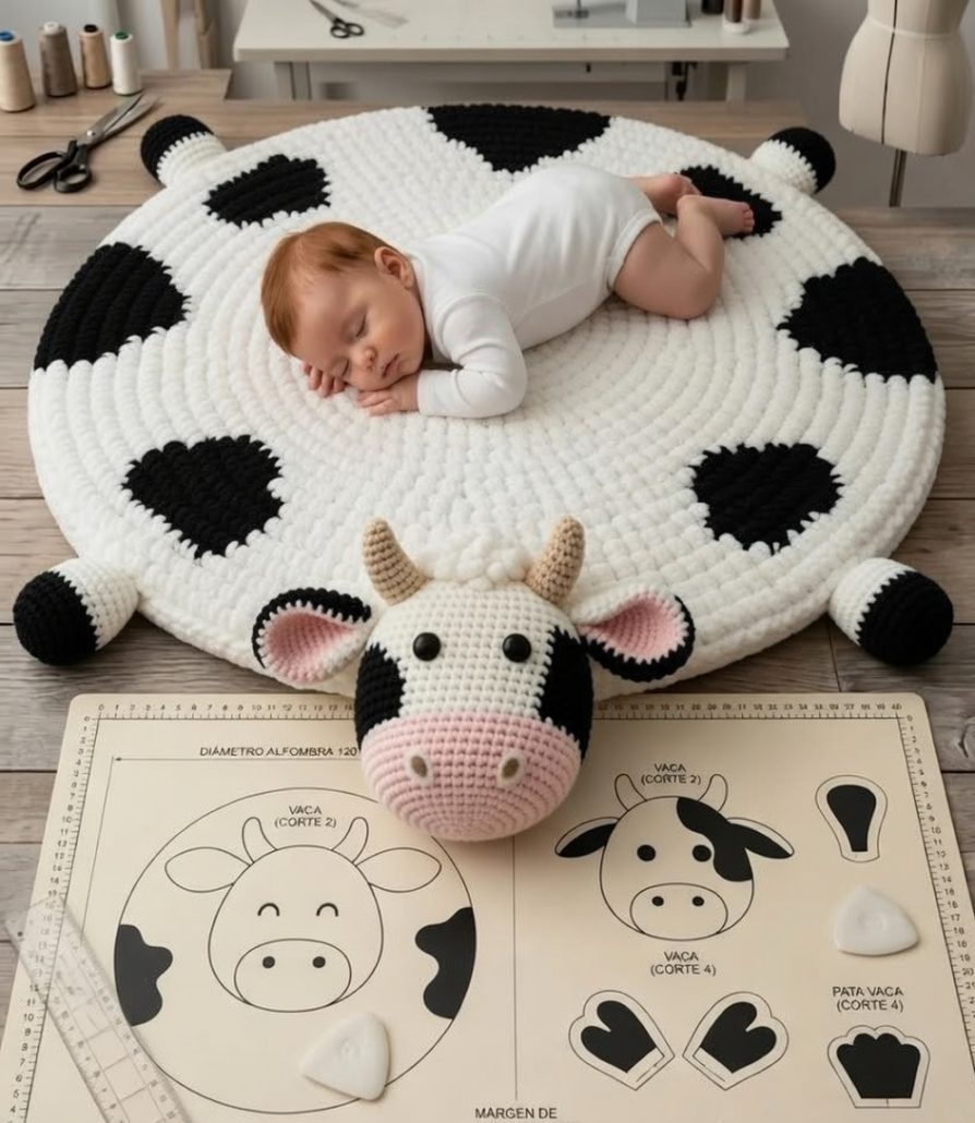 In this complete guide, you will learn how to make your own DIY Crochet Cow Baby Mat & Head step by step. Whether you are a beginner or an experienced crocheter, this tutorial will help you achieve a soft, safe, and beautifully finished result.