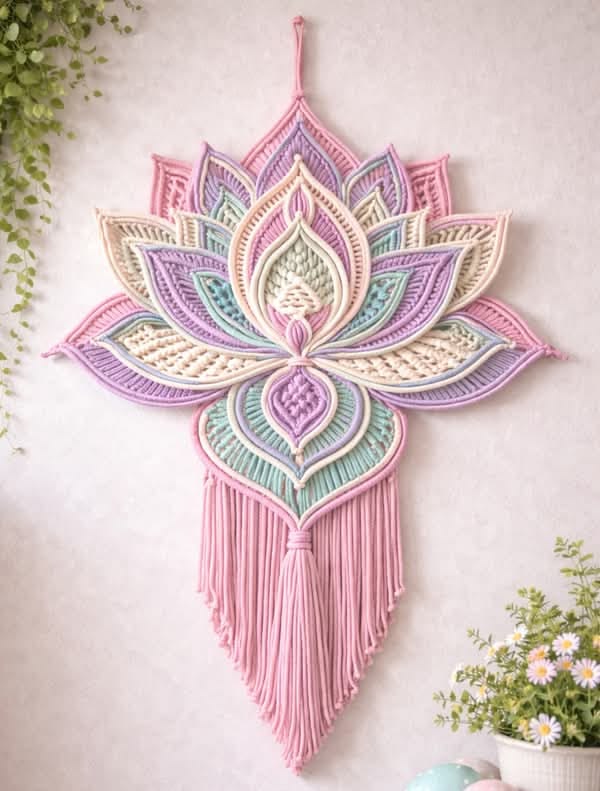 One of the most captivating aspects of the DIY – Macramé Lotus Wall Hanging is its spiritual and decorative appeal. The lotus flower is often associated with purity, growth, and transformation, making this piece not only visually beautiful but also rich in meaning. It’s ideal for home décor, meditation spaces, or as a thoughtful handmade gift.