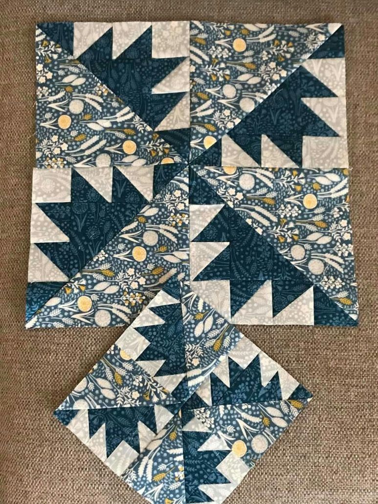 Pressing seams carefully after each step helps keep the block flat and easy to assemble.